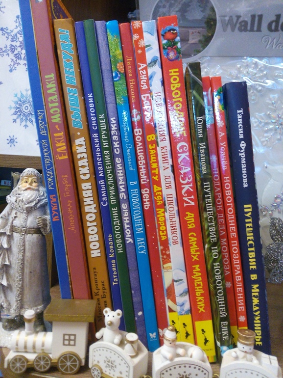 ПРиключения новогодних игрушек в том году не читали, не захотел сын слушать. Чаще всего читали Страшно милого волка. На втором месте Развеселый новый год, там много картинок, мало текста. Механический дед мороз в аудио версии у нас прослушан по кругу раз 100, за весь год..)