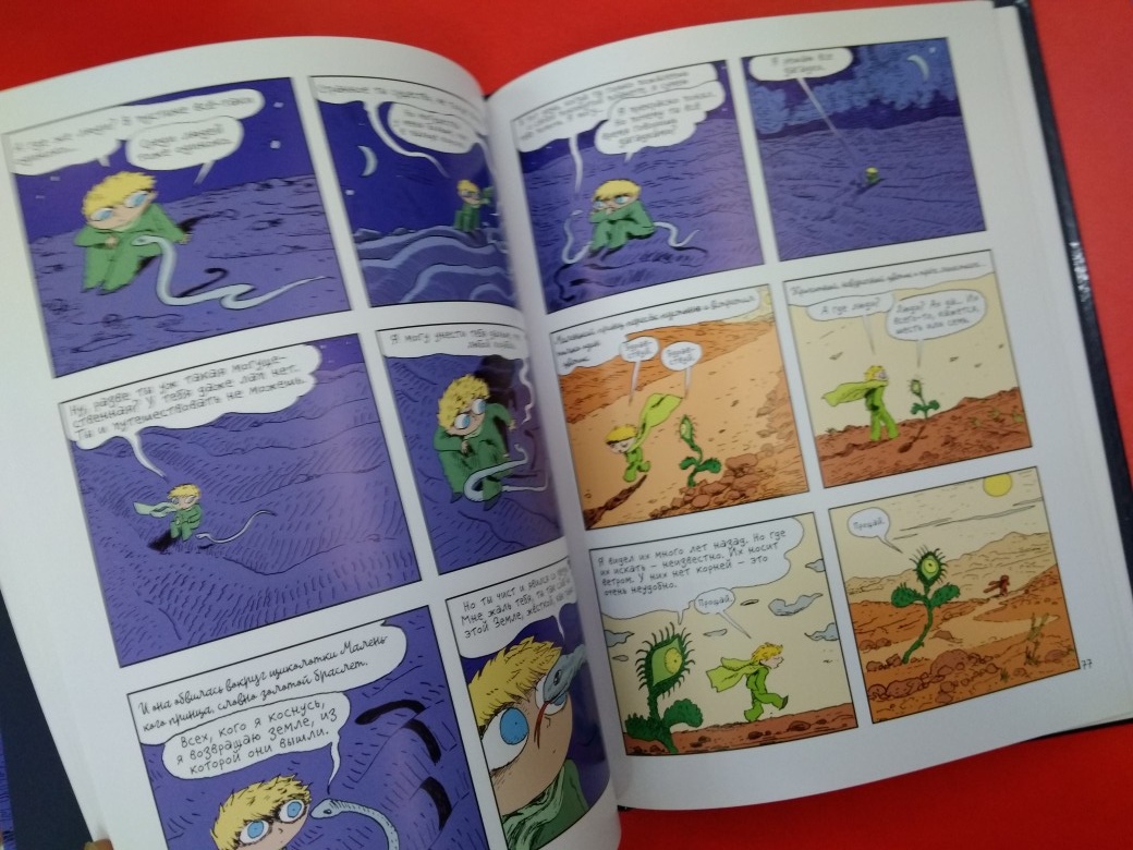 С Маленьким Принцем все знакомы, но это совсем другой Принц, это комикс. Хотя я остаюсь поклонником авторского видения книги, с его текстом и его же иллюстрациями. Тут меня не переубедить. Я слишком страстный поклонник Экзюпери и не могу спокойно смотреть, как Книга превращается в коммерческий продукт. А вот полистать любопытно.