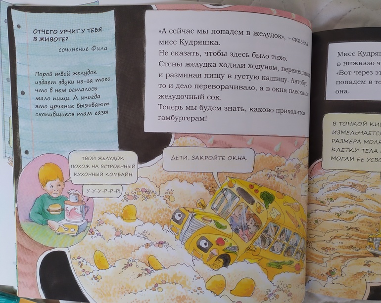 * Журнал "Фиксики" отлично подошёл для самостоятельного чтения. Книгу "Волшебный школьный автобус" читали вместе: ребенок реплики, я основной текст. Несмотря на некоторые сложные слова, доча не хотела отрываться от чтения. В общем, благодаря приключению в компании Мисс Кудряшки и школьников мы получили с превеликим удовольствием много знаний! (Жаль только, что книга в мягком переплете)