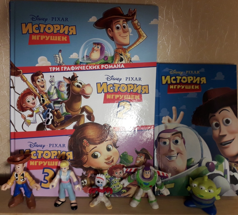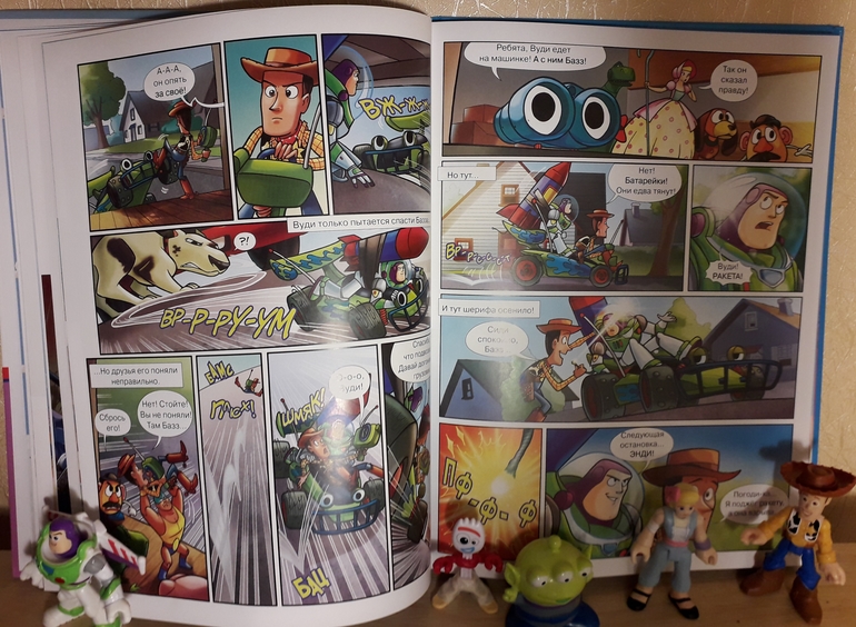 Оба обожают мультфильм Toy story. Я поискала и нашла 2 книги. Большая книга комиксов стала любимой. Костя по картинкам свои истории рассказывает) придумывает на ходу. Паша - отобрать и полистать.