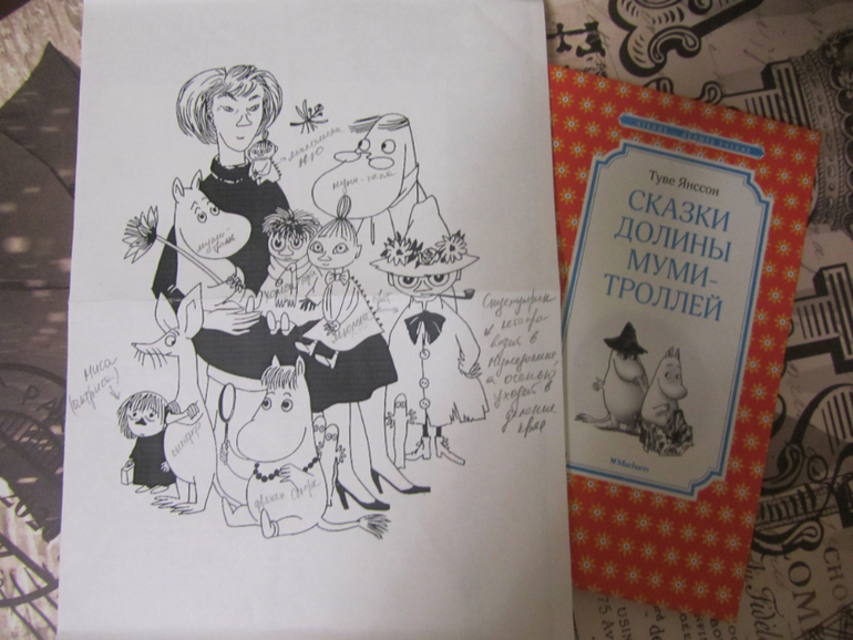 Так вот читать было сложно, то ли выбор рассказов неудачный, сразу начинается с кучей имен без вступления, я даже распечатала листик с героями рассказов, мы с дочкой пытались разобраться как кого зовут и кто кому приходится ( я в детстве не была фанаткой мумиков, но знаю, что есть много фанатов). Книгу читали с дочкой пополам, один он рассказ, другой я, в целом они конечно такие неспешные, язык красивый, по сюжету очень необычные, но дочка осталась не в восторге.