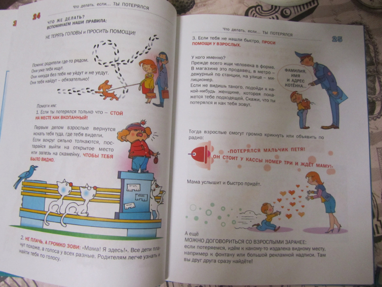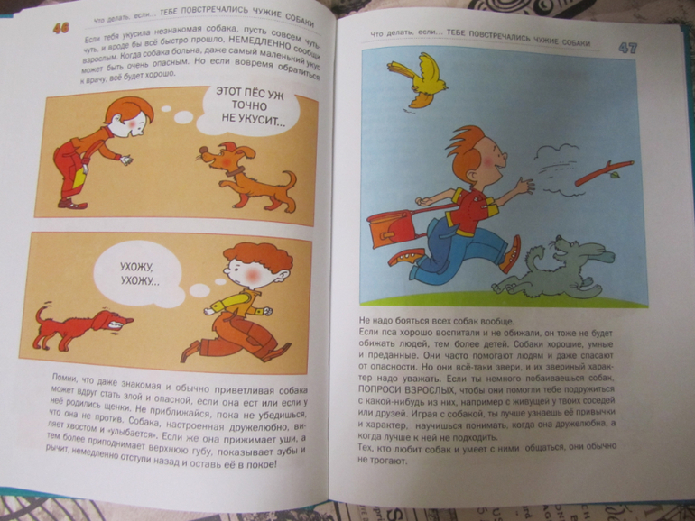 Ну, хоть эту книгу дочка периодически достает читать, очень ей интересно про страхи всякие детские почитать, как с ними бороться и везти себя в тех или иных ситуациях. Например, дочка панически боится собак ( был просто в прошлом один печальный инцидент), главу про собак она читала несколько раз, и вроде умом всё понимает, а всё равно даже маленьких щенят шугается (( Ещё нравится глава про то, что делать, если потерялся, про нахождения одному дома и когда в дверь звонят, про незнакомых людей, которые пытаются заговаривать с тобой на улице. Конечно после прочтения мы с ней всё это обсуждаем, вообще очень нужная и полезная книга, рисунки немного на мой взгляд странноватые ( можно было и получше нарисовать, но это я придираюсь). А в целом я Петрановской доверяю, её книга Тайная опора и Если с ребенком трудно меня сильно впечатлили в своё время.