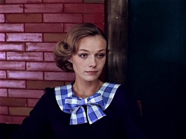 Ну и вот скажите мне, похожа ли эта героиня на женщину, которая может ТАААК посмотреть, что душа в пятки уходит? При этом сразу скажу, что и русская актриса мне тоже совершенно не нравится.