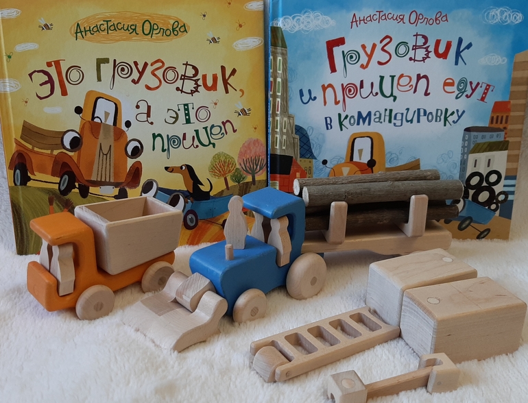 После появления в доме почти что деревянного грузовичка с прицепом достали книжных грузовичка с прицепом)