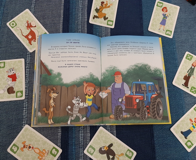 Еле ребенка увела оттуда, а дома озадачилась, что бы про трактора то почитать.. А сын мне подсказал, сам того не ведая) он про крокодила Гену попросил, которого у нас нет с хорошими рисунками, но зато в заначке была другая книга Успенского, про Простоквашино, и как раз с трактором)