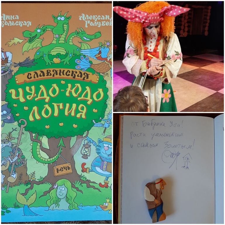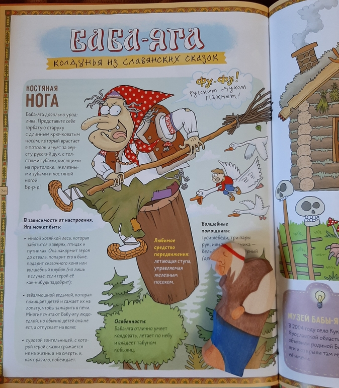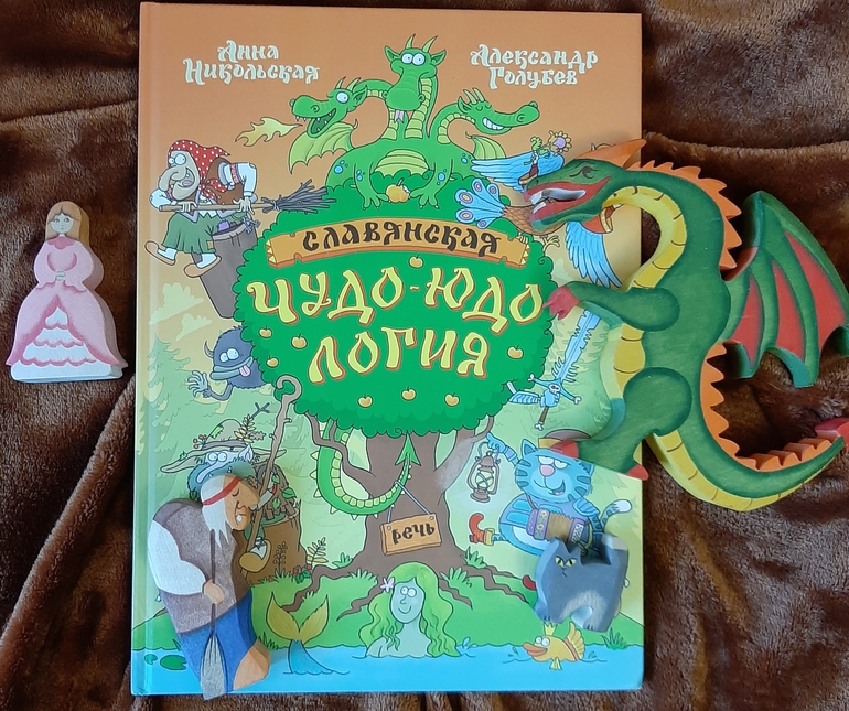 Вообще любовь к Бабе- яге и началась у сына с этой деревянной старушки) она у него часто прилетала и участвовала в сюжетных играх, и я решила, нужна книга) Сказки сказками, но хотелось более близкого знакомства с персонажем) и решила я купить Славянскую Чудо- юдологию от издательства Речь, автор А. Никольская, художник А. Голубев