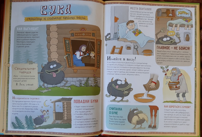 Испугать ребенка не боялась, он у меня уверен, что все страсти- ужасти они в книгах, в сказках. Но читаю выборочно конечно, про кладбище, и упыря пока пропускаю, самый мой нелюбимый разворот