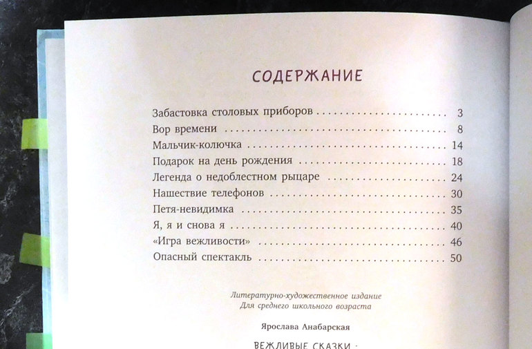 Перечислю ситуации, которым посвящены сказки: ребенок играет с едой; постоянно опаздывает; относится к окружающим недоброжелательно, не помогает им; будучи в гостях, сидит "в телефоне", а не общается; не умеет принимать подарки; постоянно болтает по телефону; не использует "волшебные слова"; постоянно говорит только о себе; нарушает нормы приличия в театре.