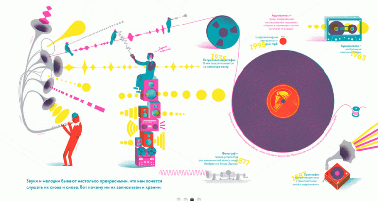 На страницах книги можно не только увидеть дом и человека в разрезе, но и узнать, что может издавать звуки. В книге есть развороты, посвященные звучанию города и природы и сравнению громкости звуков в децибелах. Здесь читатель познакомится с дактильной азбукой, сможет попытать свои силы и расшифровать с её помощью несколько слов. В книге собраны не только яркие иллюстрации сопровождаемые короткими текстами на тему звуков и особенностей слуха, но и "философские" размышления о том, как важно слышать и понимать друг друга, и что иногда нужно отгородиться от шума и побыть в тишине.
