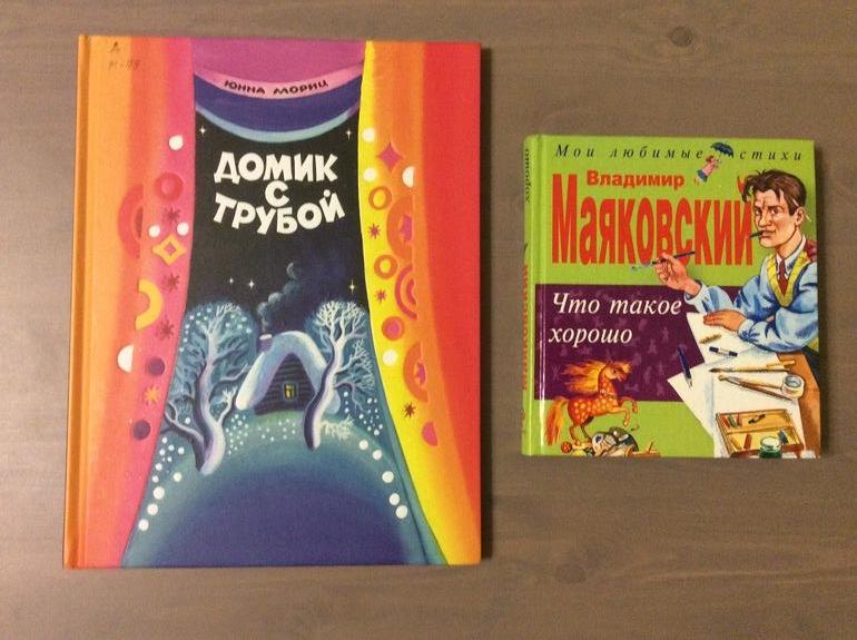 И впридачу взяли два сборника стихотворений - Ю.Мориц и В.Маяковского. Но слушал сын их нехотя, прочитали пару раз.