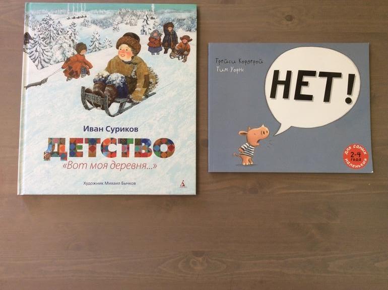 Давно хотелось купить книгу «Детство», часто мелькающую в сообществе. Исполнила своё желание, очень уж нравятся иллюстрации М.Бычкова. И сын вроде тоже с интересом рассматривает всегда. А книга «Нет!» появилась в нашем доме как поучительная, когда нас с мужем начали одолевать протесты на всё и вся без повода:)