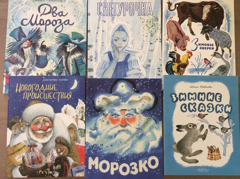 Далее начинается подборка- пополнение наших зимне-новогодних книг. Конечно, перечитывали и старые тоже. Все сказки сын слушал с интересом, но больше всего ему приглянулись «Два мороза», «Зимовье зверей» и «Новогодние происшествия».