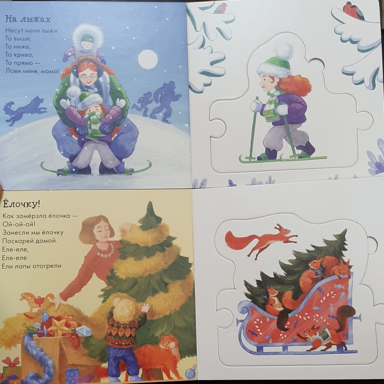 Очаровательные рисунки, звонкие, точные, актуальные рифмы Орловой, и что особенно приятно, ни одного повторения с моими сборниками Орловой! После этих книжек сразу хочется снега и гулять, ставить елку и доставать елочные украшения) очень атмосферные книги, да еще и с пазлами)