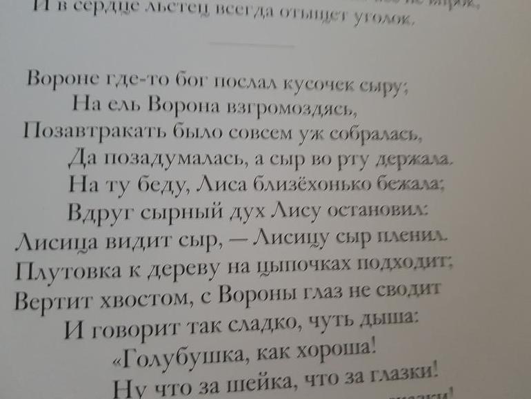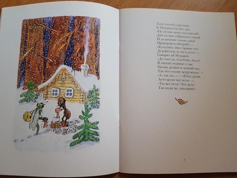 Дочка прочла очень забавный рассказ Саши Чёрного о девочке Люсе, которая учит Крылова писать басни. Ей ещё близко оказалось, что девочка живёт в Париже (1920е), гуляет в Булонском лесу и использует французские слова в своей речи) И этот рассказ спровоцировал новую волну интереса к творчеству баснописца. Прочли все басни, которые упоминаются в рассказе Саши Чёрного. Сама читает (и даже выучила кое-что наизусть) сборник от изд. Мелик-Пашаев.