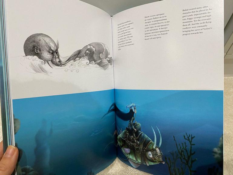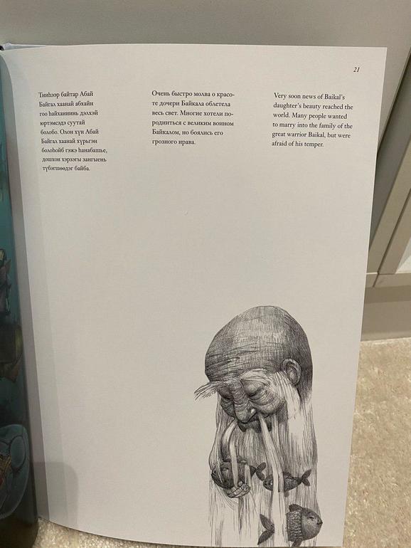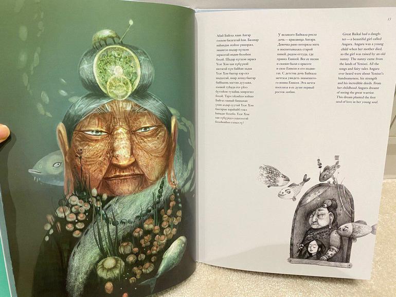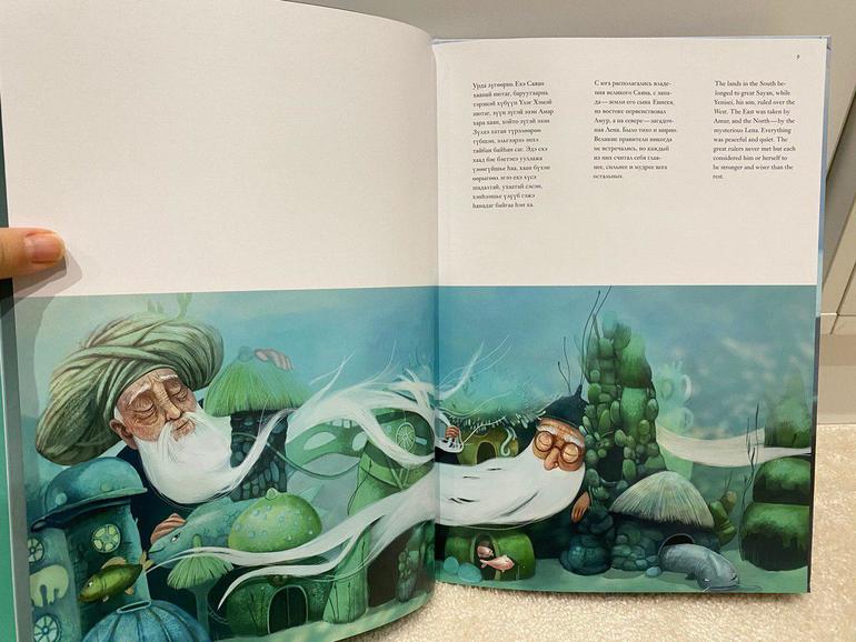 Чем оригинальная данная книга - она написана на трех языках: бурятском,русском,английском. Рисунки восхитительны,будоражущие воображения. Я бы сказала в стиле готового полнометражного мультфильма,только на страницах книги. Оформление чуть больше А4, плотная мелованная бумага. В магазинах в свободной продаже у нас не нашла,может это исправят скоро. Сестры художницы очень активные девушки и идут в ногу со временем, у них есть страница в инстаграм. Надеюсь это не выглядит как реклама.