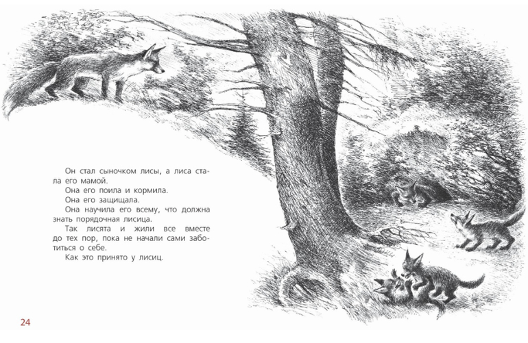Пробегала по лесу лисица и услышала, как под кустом плачет чужой лисёнок. Рыжая плутовка торопилась, потому что дома её ждали трое своих малышей, но чужой лисёнок плакал так жалобно... И лиса решила взять его к себе в логово. По пути ей пришлось преодолеть немало опасностей, но найденыш был спасен.