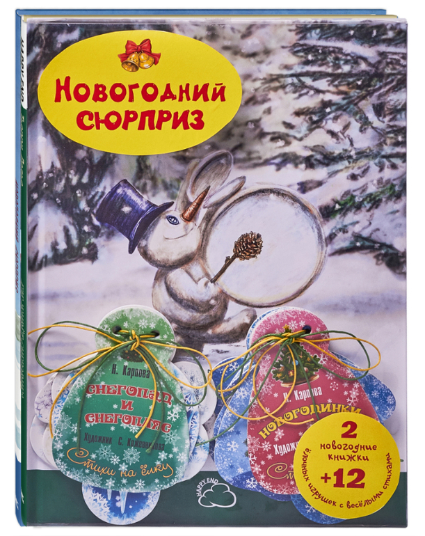 Подарочный набор "Новогодний сюрприз" (2 новогодние книжки и 12 ёлочных игрушек с весёлыми стихами):