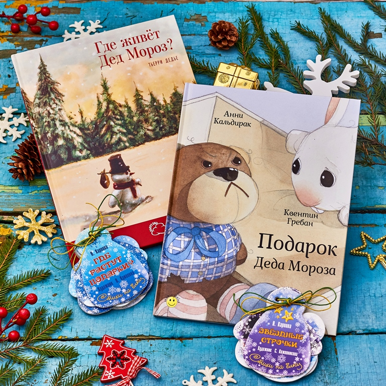 - "Где живет Дед Мороз?" (автор и художник Дедье Т.) - новогодняя история о том, какие подарки любит получать на праздники Дед Мороз, а так же два набора новогодних стихов на елку:
