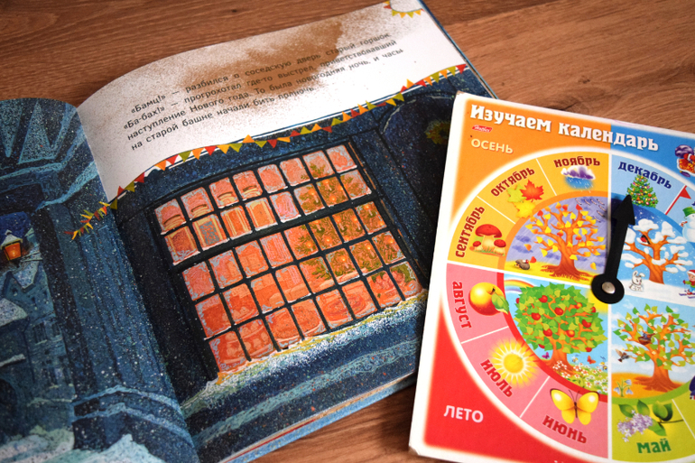 У нас интерес к временам года и месяцам в этом году появился, так что всё в ход пускаю: и книжку, и календарь, который на фото)))