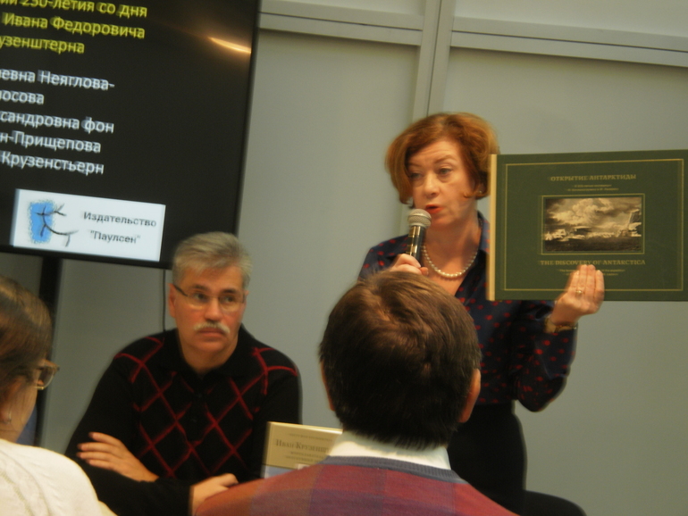 Пришла прямо к зажигательной встрече с потомками Крузенштерна - один из них слева на фото, он и процитировал Новикова - Прибоя: "Раньше корабли были деревянные, а люди железные"Наследники Крузенштерна 20 (!) лет разбирали семейный архив, чтобы книга о великом предке вышла достоверной - железная самодисциплина у потомков!