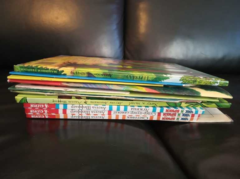 Третья строчка - "медвежья")) плюс Лева туда машинки уложил. Мишку-Топтыжку в сентябре не мог осилить, сейчас спокойно слушает