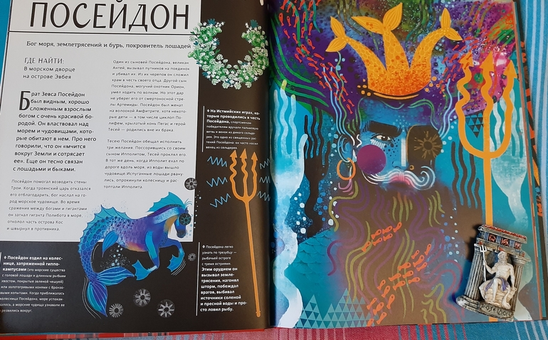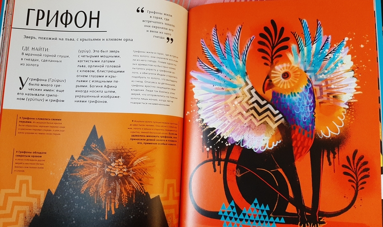 Помимо невероятных рисунков здесь и понятный, интересный текст с необычными фактами, уточняющими объяснениями. Конечно, дети сейчас способны запросто все спросить у Алисы, и что такое лабиринты Минотавра, Нить Ариадны, значение "ахиллесовой пяты", и много другое , но любопытнее, мне кажется, прочитать об этом самому, любуясь невероятными рисунками!)