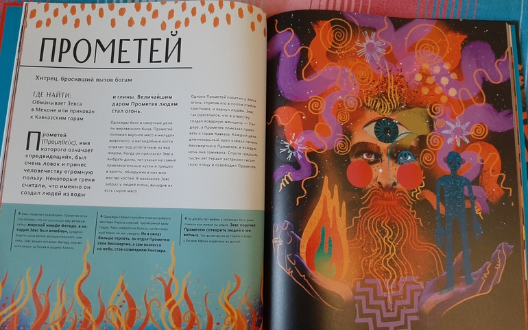 Это настолько другой взгляд на популярную тему Древней Греции, просто разрыв шаблона! Но при этом эти рисунки просто завораживают, притягивают к себе! Как здорово, что современные художники, издатели не боятся нового, креативного, необычного! Ведь смотря на такие совершенно нетипичные изображения богов , начинаешь как то по другому мыслить и представлять, отлично развивается фантазия, креативность, я бы сказала, раздвигаются границы реальности, по хорошему снимаются какие то ограничители в творчестве! Книга очень стильная, очень красивая, очень яркая и сочная, и очень непривычная!