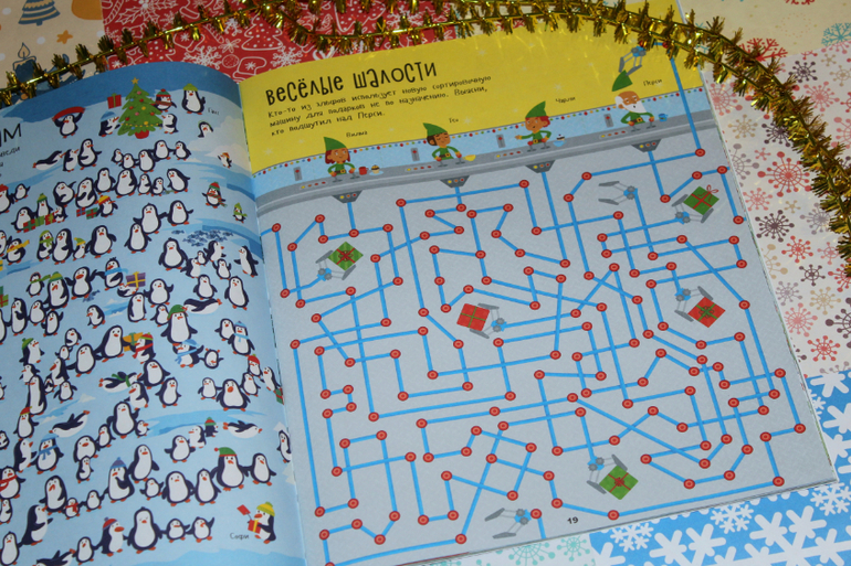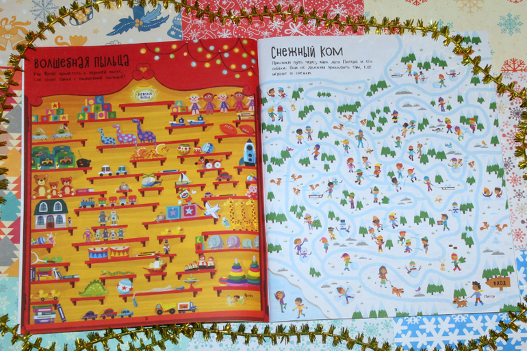 Что же Настёна получила 1 декабря, кроме красоты за окном? Киндер и толстенькую тетрадь с новогодними лабиринтами! 65 страниц ярких, тематических лабиринтов! Умный Снеговик знает, как сильно Настена любит лабиринты! Умеет порадовать!)) Лабиринты подойдут деткам лет с 6-7, не сказать, что они лёгкие и чем дальше ребёнок продвигается, тем сложнее становятся задания!)) Это особенно здорово! Но если уж совсем не получается найти выход из лабиринта, то в конце тетради имеются ответы. А мы не привыкли сдаваться! Всегда сами находим правильную дорожку, даже в самых запутанных лабиринтах!))