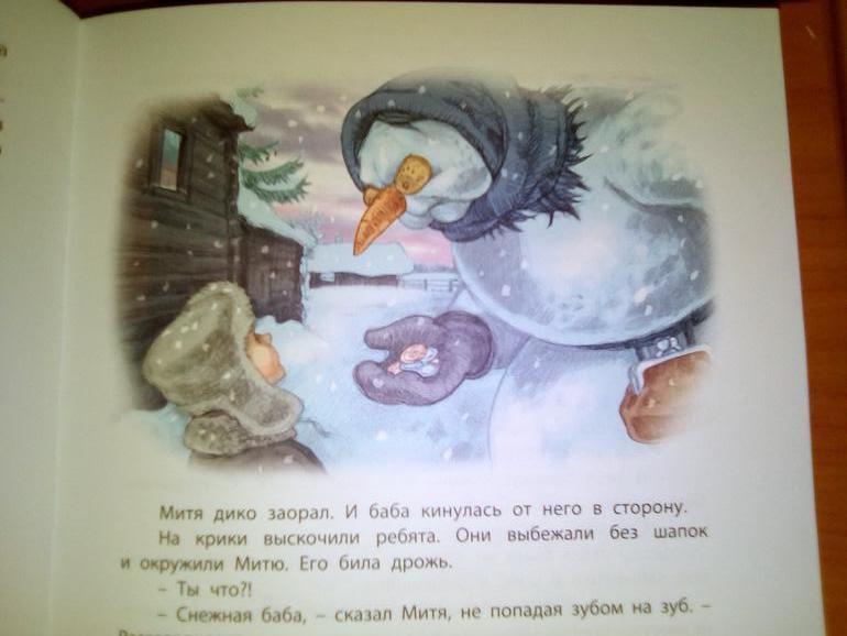 В целом, сказка интересная, правда, мне показалась несколько затянутой, как, впрочем, и фильм. Иллюстрировал эту сказку Н. Панин, и снежные бабы у него получились действительно страшноватые, как и описано в книге - с картофельными глазами. А в фильме они превращаются во вполне обычных женщин.