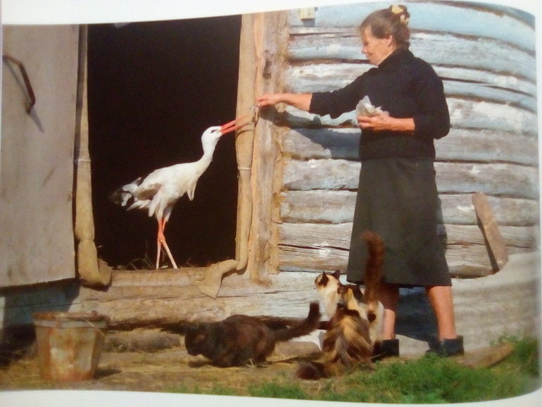Белый аист гнездится недалеко от человека, поэтому бывает так, что возникает и дружба человека и птицы:
