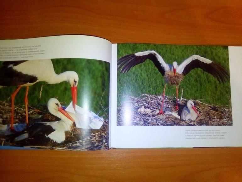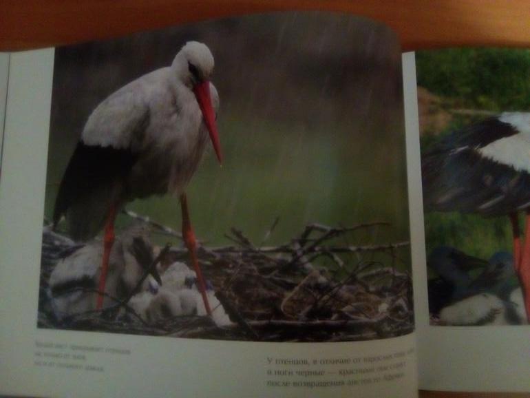 Книга "Белый аист - посланец неба, черный аист - лесной отшельник" (издательство "Белая ворона"), необычно издана - это как бы "двойная" книга: с одной стороны про белого аиста, а переворачиваем - там про черного: