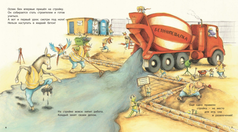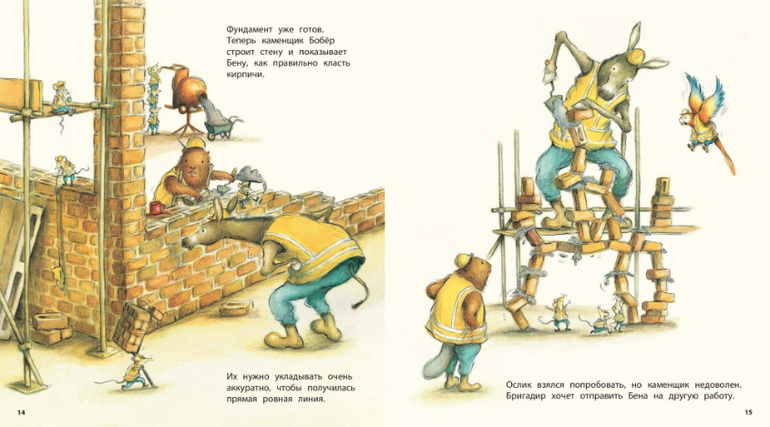 "Ослик Бен мечтает стать настоящим строителем. Он учится укладывать кирпичи, управлять бульдозером и самосвалом… Но не так-то просто построить настоящий дом!