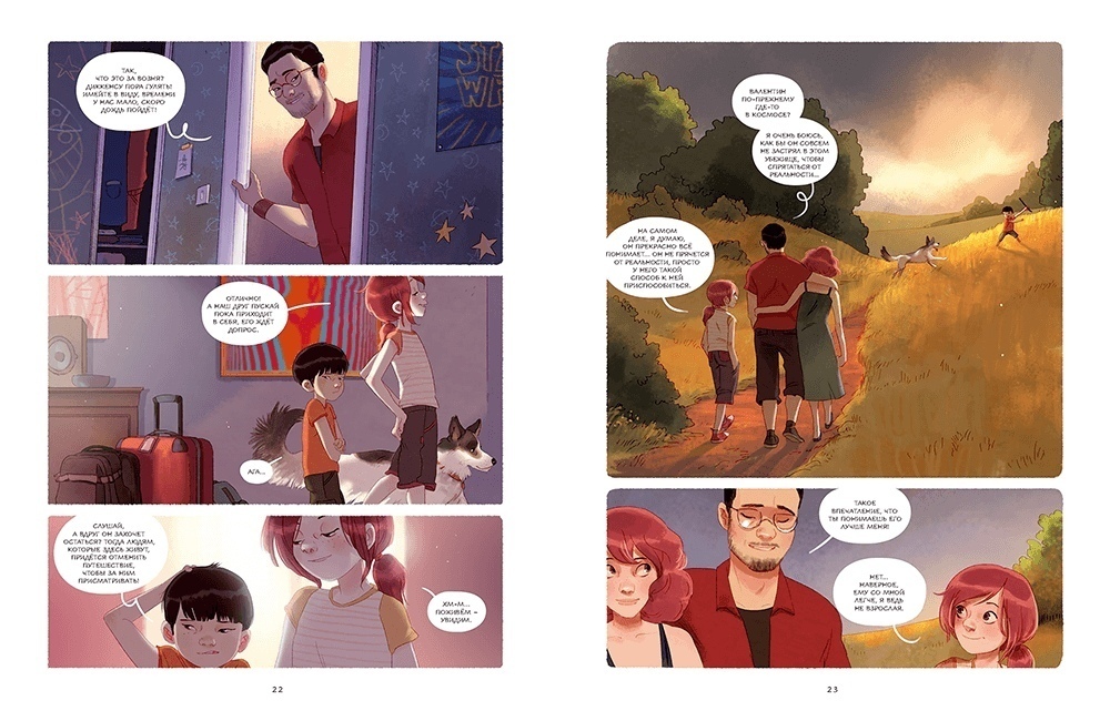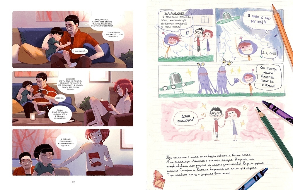 - В конце книги вы найдете два листа с бумажными персонажами и космическими костюмами для вырезания.
