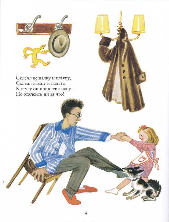 стихиБрали в библиотеке. Оказалась очень ладная книжечка. Издательство Мелик Пашаев. Всё для меня в ней прекрасно. Плотный глянцевые страницы. Небольшой объем. Оптимальное соотношения текста и картинок. В книгу вошли 3 небольших стихотворения в переводе с польского Заходера: "Сказочка" Р.Писарский, "Про пана Трулялинского" Юлиан Тувим, "Клей" Ян Бжехва. Все три нам очень понравились. При чем обоим детям - 3 и 6 лет. Сказочка есть у нас в сборнике стихов Заходера, но с рисунками А.Порет оно заиграло совсем другими красками. Про пана Трулялинского - очень развеселое стихотворение.