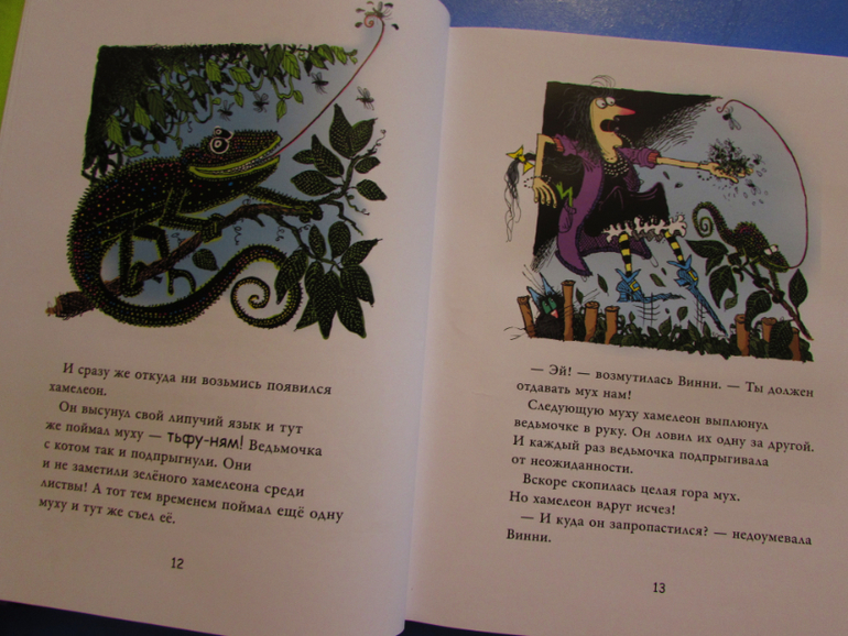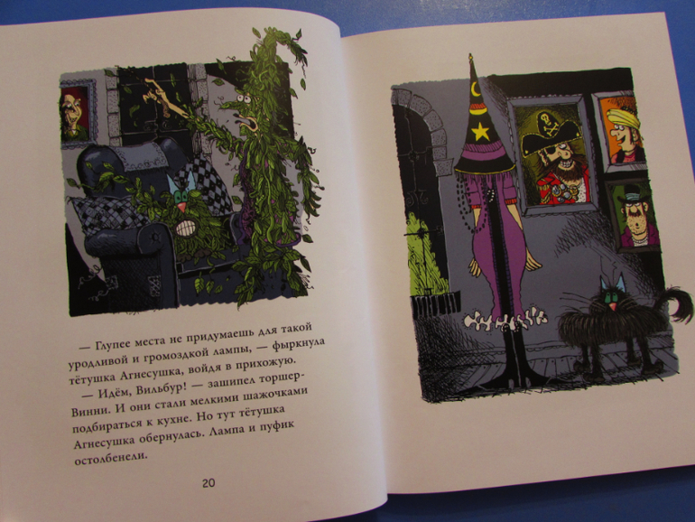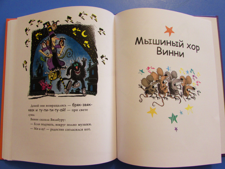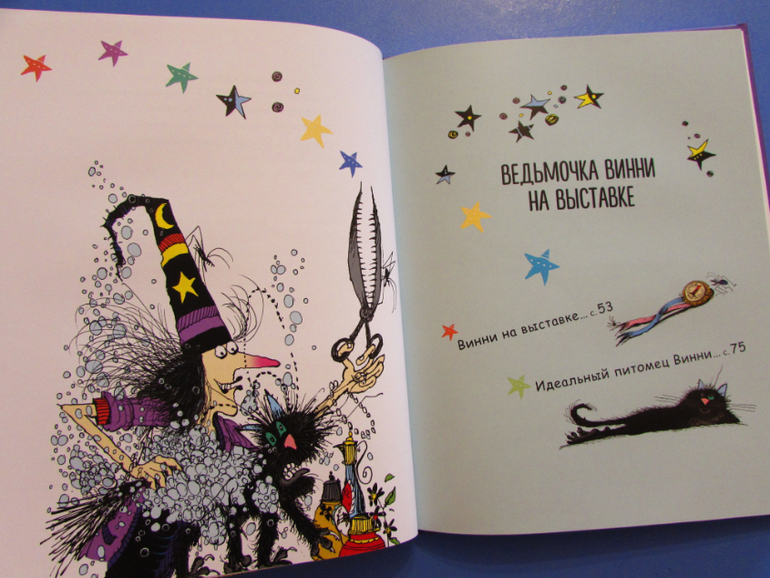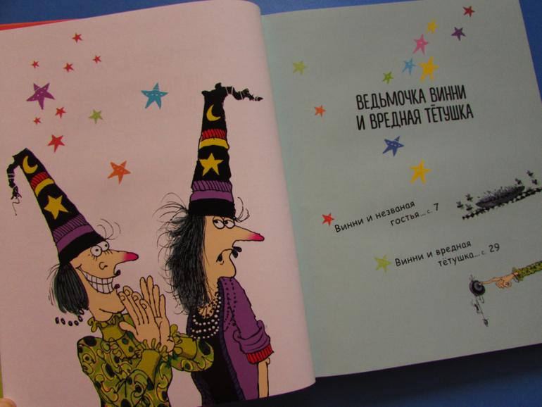 Книжка "Ведьмочка Винни и вредная тётушка" толстенькая (144 стр.), ведь в ней шесть историй-картинок: