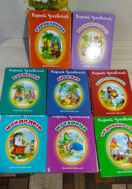Знакомые с детства сказки, сначала взяла на пробу несколько книг, отлично пошли. Есть что посмотреть и послушать - из них одно время была любимая Муха-Цокотуха. Но до сих пор любит их больше, чем сборники. Летом ходили с ними и на речку, что удобно - не так страшно, если облить водой. Я конечно люблю в рисунках Сутеева, но это я! Да, рисунки компьютерные, но понятные и яркие, содержание все знают )))