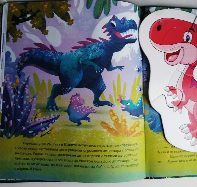 Я вначале сомневалась в рисунках, старалась книжки брать для ребенка с максимально похожими иллюстрациями. Но я сама их очень полюбила, они очень добрые, и красивые, и динозавры, детям такие и нужны, немного мультяшные и не страшные, но при этом узнаваемые!