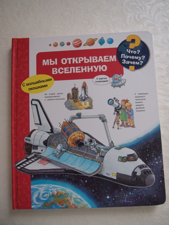 5. Пятое место разделят две книги "Звездная карусель" и "". Тема космоса стала для нас актуальной после «Звездной карусели» Сапгира. Долго искала энциклопедию подходящую нам по возрасту. "Мы открываем вселенную" отличная энциклопедия для детей от 4 лет. Информации в ней понемногу и в меру: