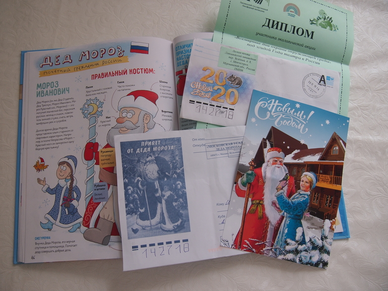 3. "". Эту книгу я выдала сыну в конце октября, когда мы начали делать открытки дедам Морозам (спасибо за идею Дилетантке в декрете). И она уже два с половиной месяца стала настольной книгой. Читаем каждый день. Самые любимые странички стали с финским Йолупукки (ему мы отправили письмо, но пока он нам единственный не ответил) и китайская страничка. А вот страничку с Францией Леша долго не давал не кому открывать и читать, потому что испугался Пер Фуэтара с розгами))