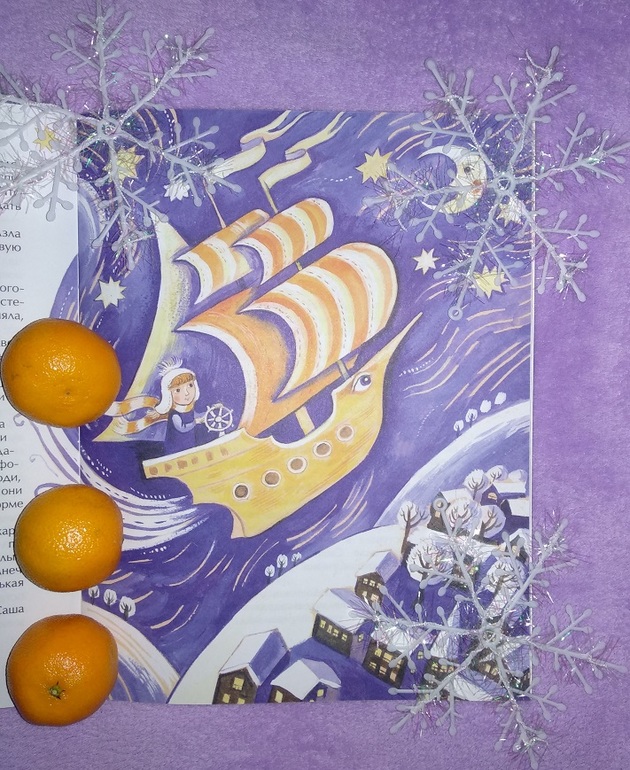 И вот однажды, в канун нового года, Саша встретила необыкновенную старушку, которая подарила ей три волшебных мандарина и к ним задание в придачу: "одну сказку возьми себе, вторую отдай тому, кто в беде, в третью подари всем вокруг."