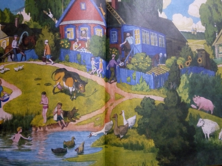 Флешмоб!Всем добрый день! К сожалению, в деревне мне доводилось бывать лишь проездом. Но бабушка так много и интересно о ней рассказывала, что у меня с детства было такое ощущение, как будто я сама там жила)) Вот немного картинок из деревенской жизни, которые нашлись в наших книжках.