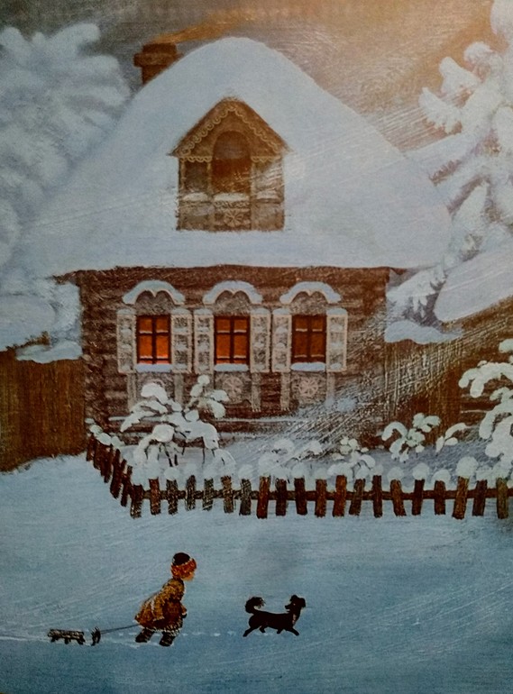 а потом возвращаюсь вечером домой, вокруг так тихо, что голос слышится на много метров вперед, снег скрипит под ногами, в маленьких окошках горит свет...