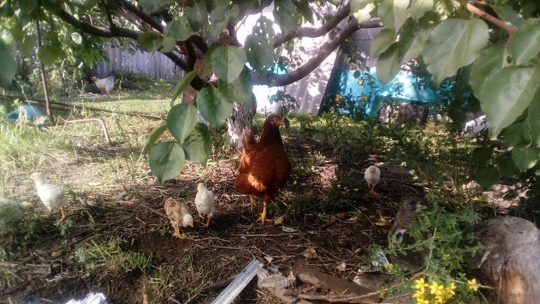 Домашнее хозяйство - куры у нас всегда были, и сейчас есть, свекровь держит. Я их, честно говоря, не люблю. И даже боюсь( А вот дети хорошо к ним относятся. Помню, когда Лида была маленькая, если начинала психовать, мы с ней выходили во двор курочек смотреть - и сразу успокаивалась. А в этом году у нас даже цыплята были.