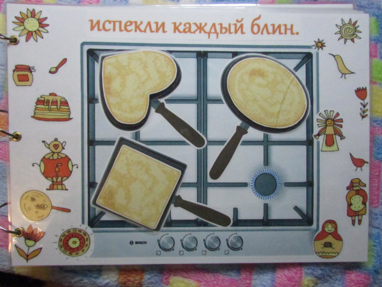 А ещё в этом году к масленице я подготовила для своей младшенькой вот такую развивающую книжечку.