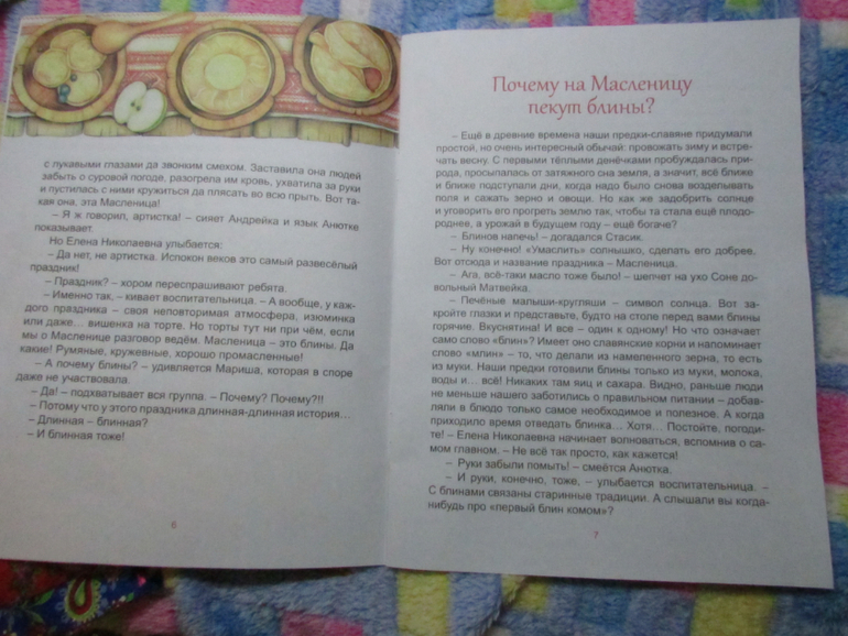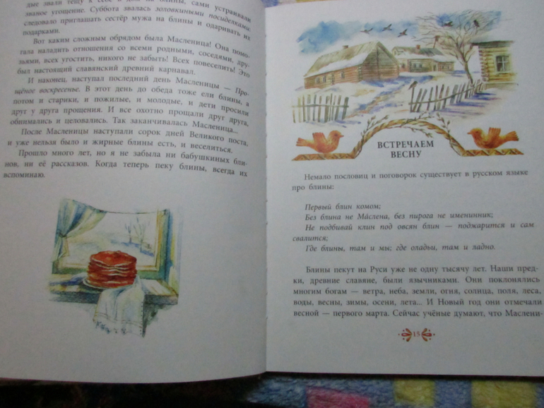 Красивая и добрая книга. Покупала по совету подруги. И ни сколечки не пожалела!Детишкам книга понравилась! Понятно и кратко описаны масленичные традиции. Есть интересные рассказы по теме и имеются рецепты блинов и пряников.