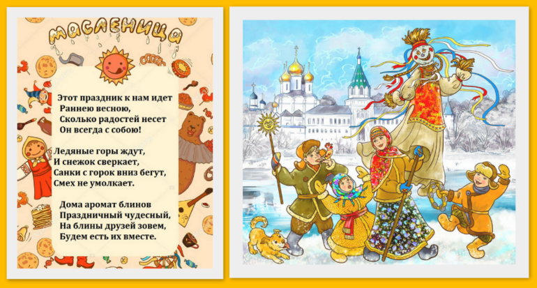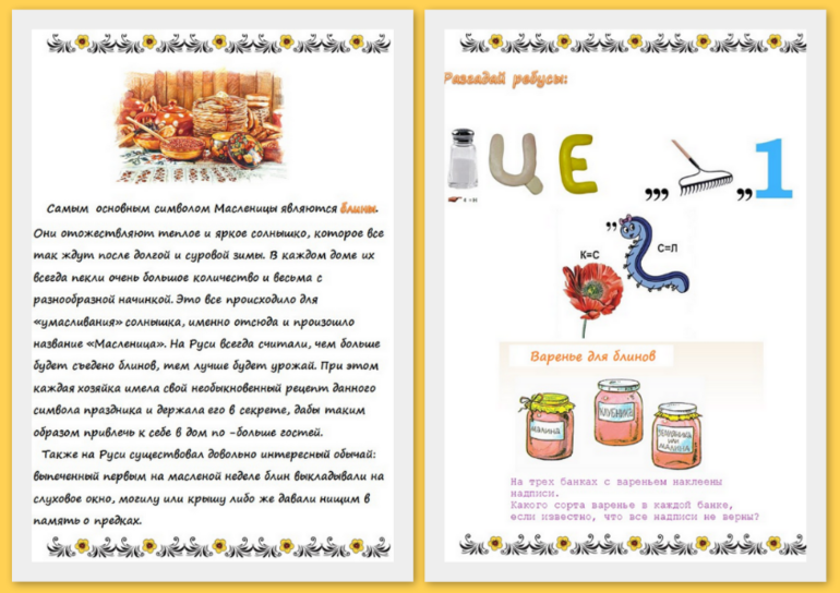 Здесь есть и стихотворения небольшие, и загадки, и головоломки и информация по масленичной теме...
