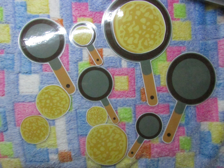 Ребёнок должен будет подобрать к сковороде блинчик по размеру...