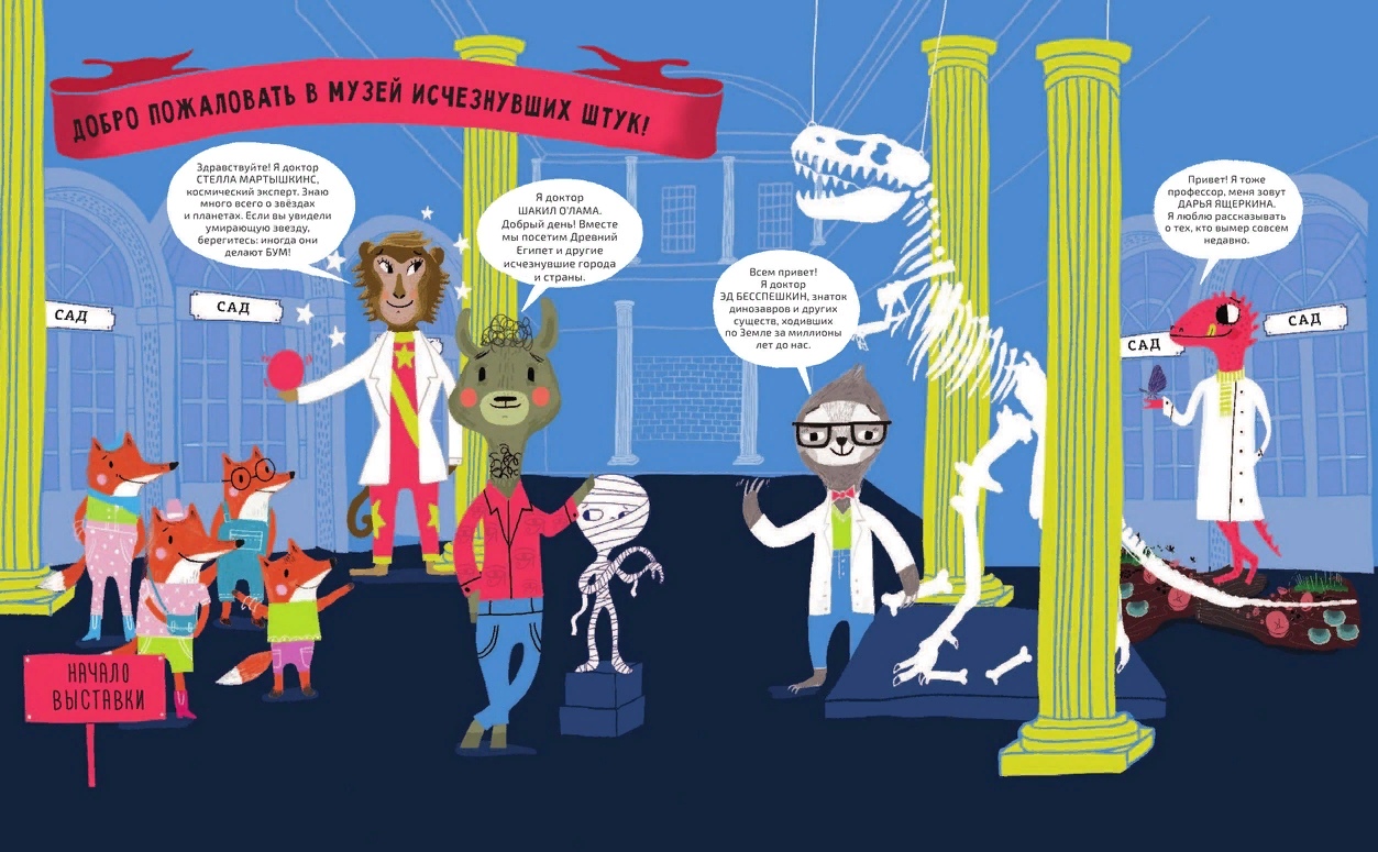 Добро пожаловать в музей древностей. Возле входа вас уже ждёт гид, у которого наготове миллион интересных фактов. Динозавры, птица Додо, древние египетские мумии и звёзды, которые погасли столетия назад. Пожалуйста, не трогайте экспонаты, некоторые из них могут укусить! Нэд Хартли пишет комиксы и книги для детей. В 2018 и 2019 годах он был автором ежегодников по вселенной Звёздных воин. Нэд живёт в Лондоне со своей семьёй. "Динозавры, мамонты и разные древности" - забавный путеводитель, из которого можно узнать обо всех вещях, которых уже давно нет на свете. Настоящий научный комикс для самых маленьких.