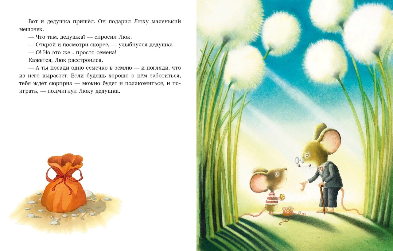 Мышонок Люк получил на день рождения необычный подарок. Дедушка подарил ему мешочек семян. Люку пришлось набраться терпения и научиться ухаживать за маленьким росточком. Его труды оказались вознаграждены!