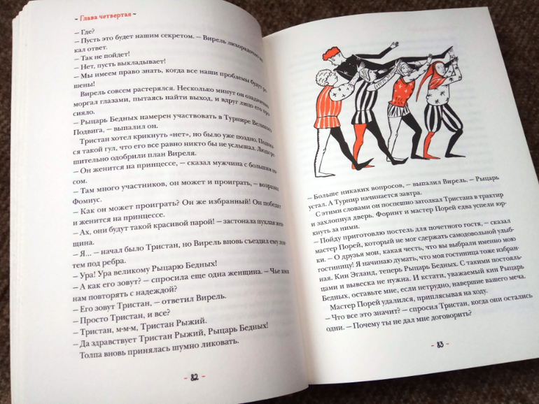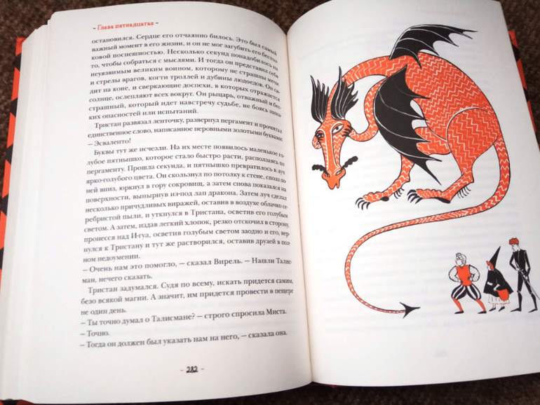 Рыцари принимают участие в Турнире Великого Подвига - они должны привести волшебный талисман, спрятанный в пещере страшного дракона. В награду, как и полагается, рука принцессы. Вся книга наполнена неожиданностями. Если то, что герой из крестьян станет рыцарем, еще угадывается, то его мотивы совсем непонятны - не за любовь борется, любви в книге вообще «кот наплакал». Волшебное оказывается простым, не волшебное - волшебным, чудовище вдруг трусливое и потому миролюбивое, а то, что я до конца книги считала талисманом - вообще мимо прошлось по сюжету.
